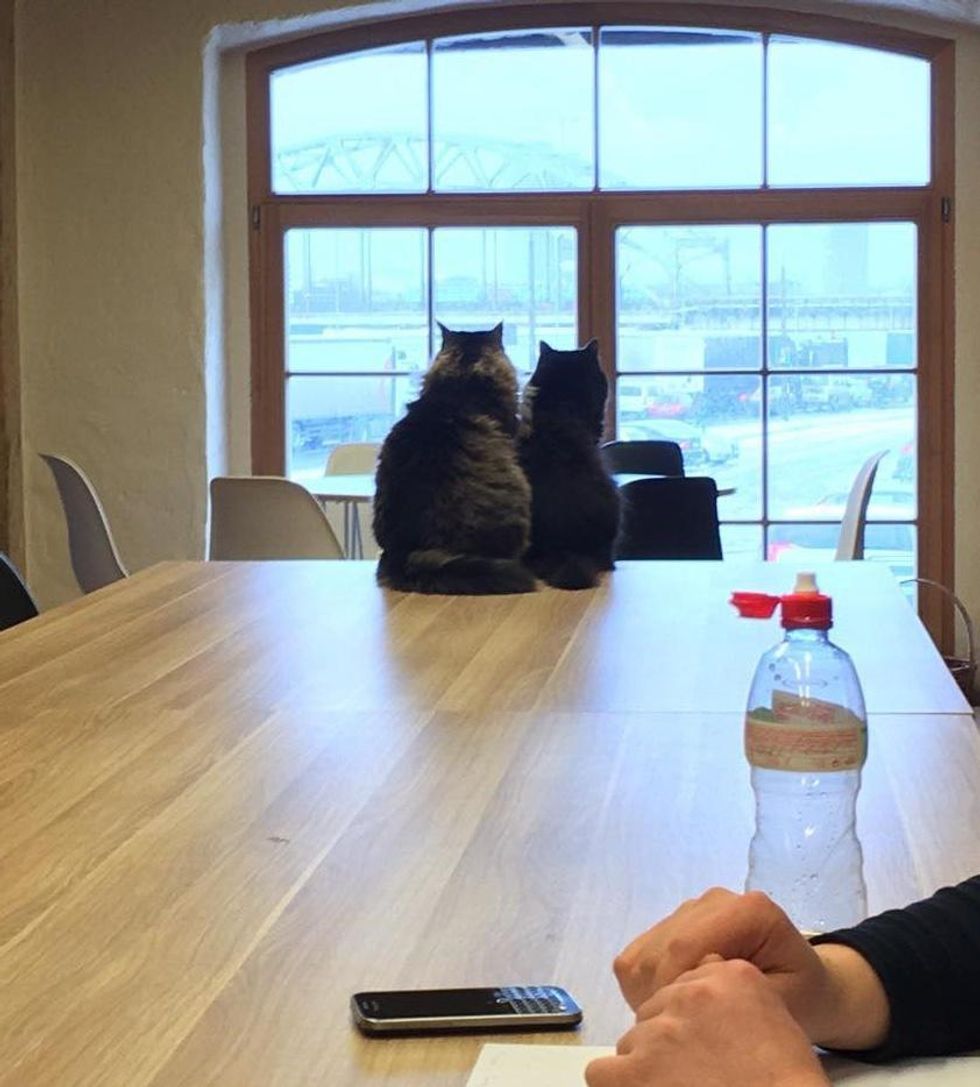 Meetings are more purrductive when they get the attendance from their feline colleagues.