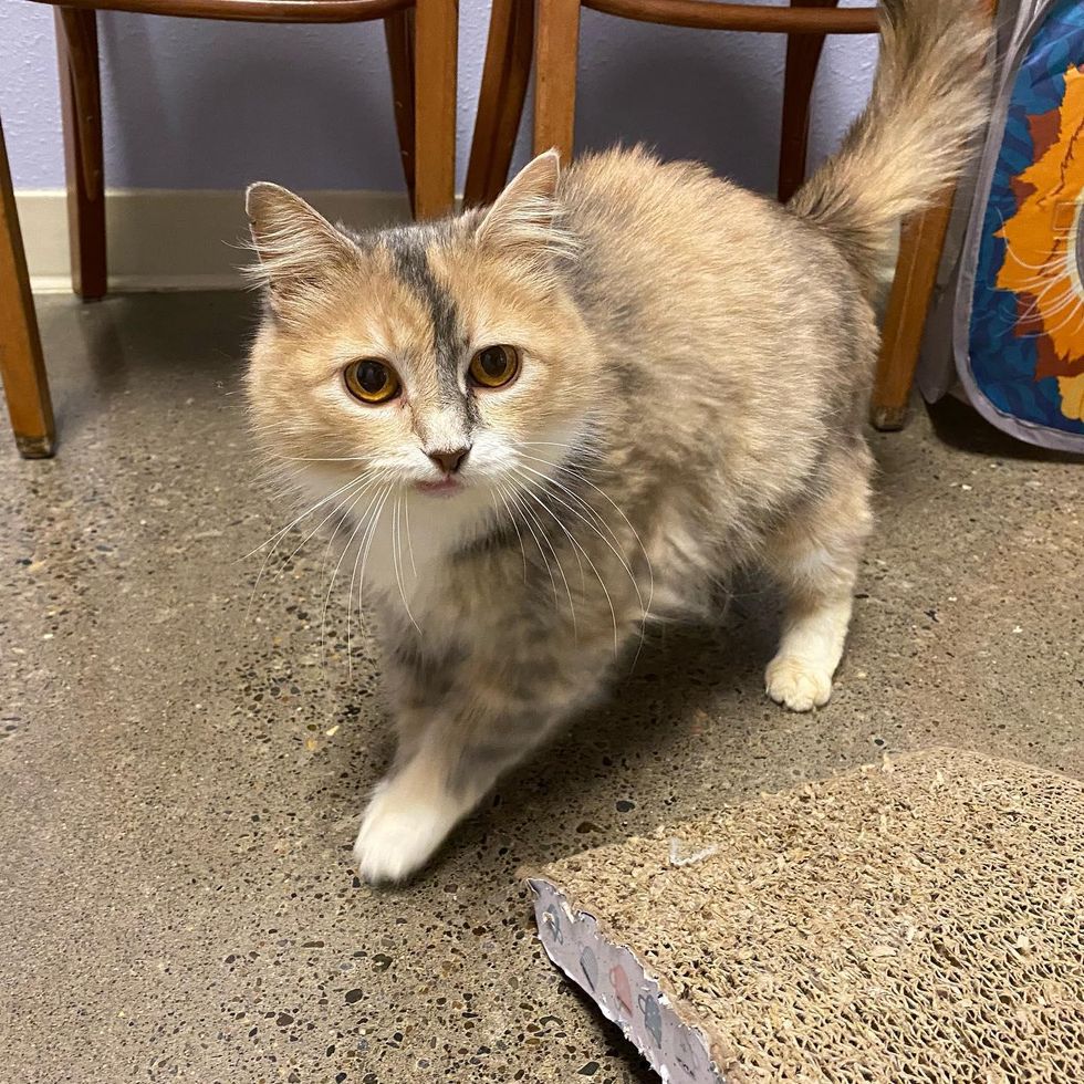Priscilla has made some feline friends on the adoption floor and hopes that the right family will come along soon.