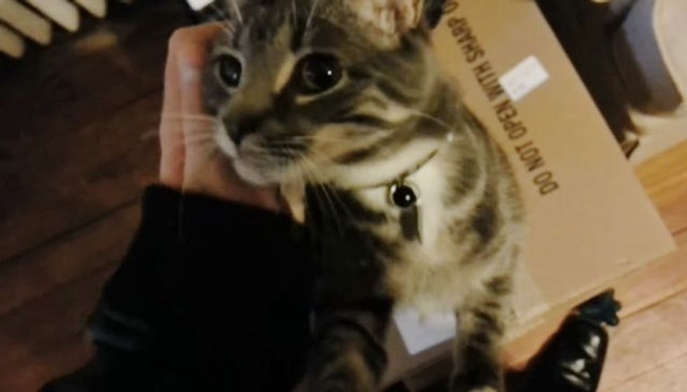 It's almost impossible every time Rudy's human dad tries to leave for work. The sweet kitty won't let him go and just keeps hugging him to make him stay.