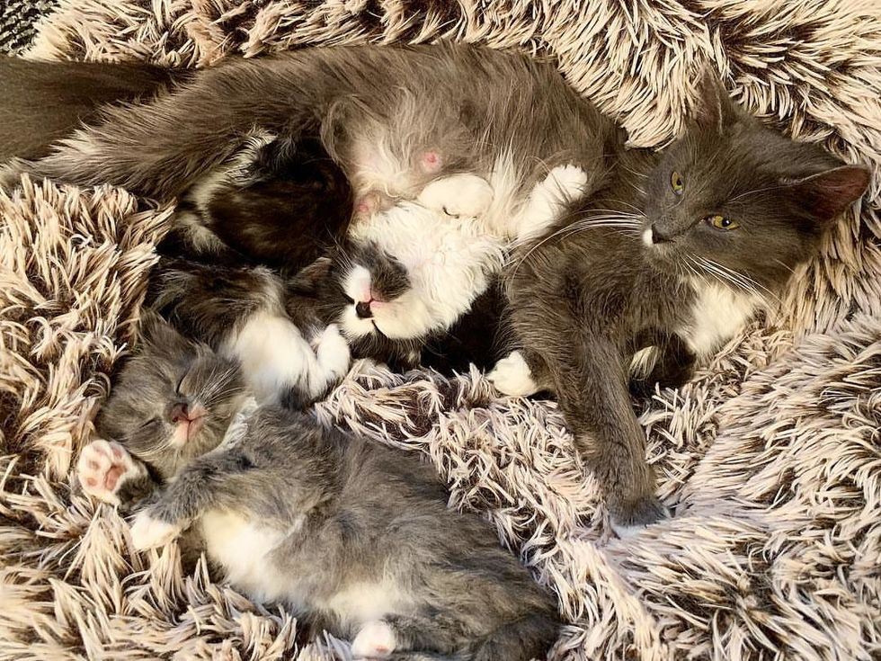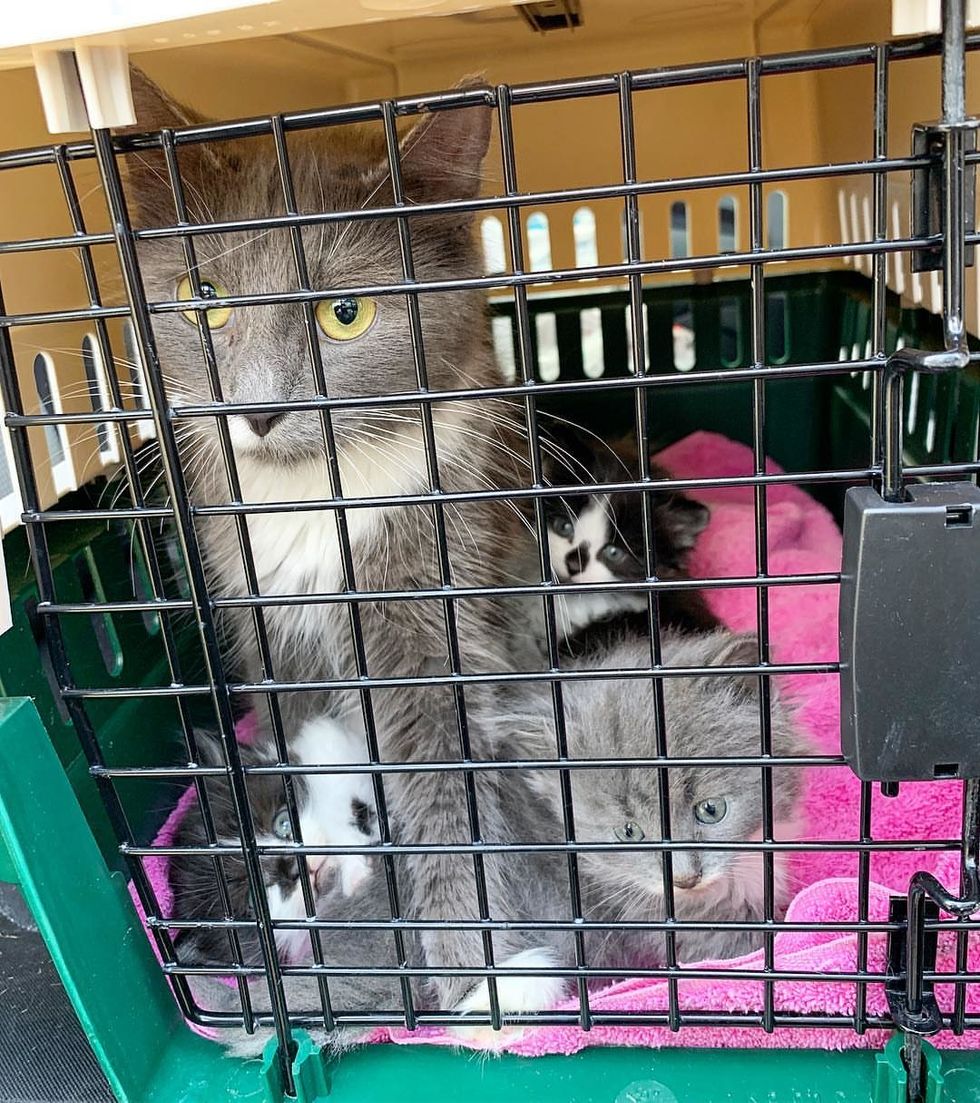 Just a week ago, Mama Delta was braving the cold, keeping her kittens out of harm's way. Now she can finally relax and enjoy her new VIP life.
