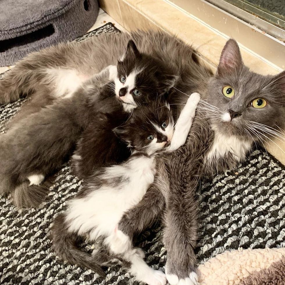 This feline family was abandoned and left outside in the cold until they were rescued and brought to a local animal shelter just days before temperatures dropped in Greensboro, North Carolina.