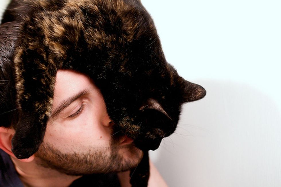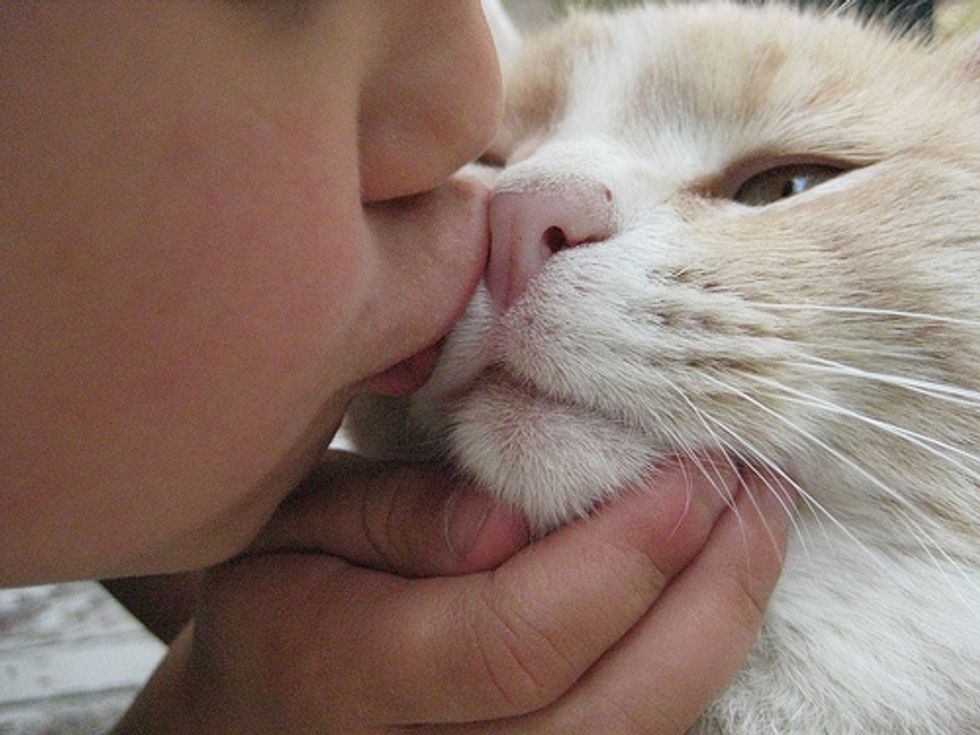 Aren't cats just so kissable? I love to kiss their little nose and forehead. What about you? When a cat snuggles up and taps his wet nose to you, it is an affectionate gesture and a way for them to say "I Love You!" When a kitty is slowly blinking his eyes as if he is getting sleepy, it is also a sign of affection which is similar to a blowing kiss. You can return a kiss by giving them a nose bump or blinking your eyes slowly at them.