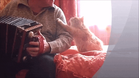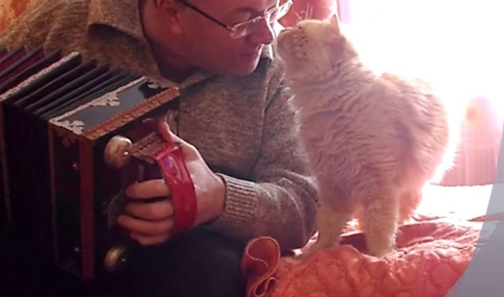 This cat loving man plays the accordion for his beloved furry friend who enjoys the music and returns the love with a lot of nose kisses and plenty of cuddles. The kitty is his biggest fan!
