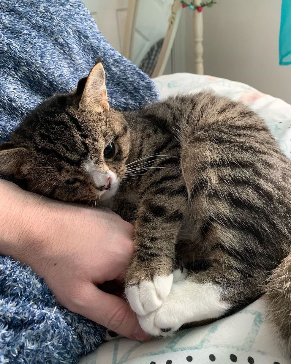 Arlo the cat came to the Cats Protection's Bridgend Adoption Centre (in South Wales) for a chance at a better life. He was born with a few birth defects. Despite it all, the tabby never let anything stop him and just wanted to be loved.