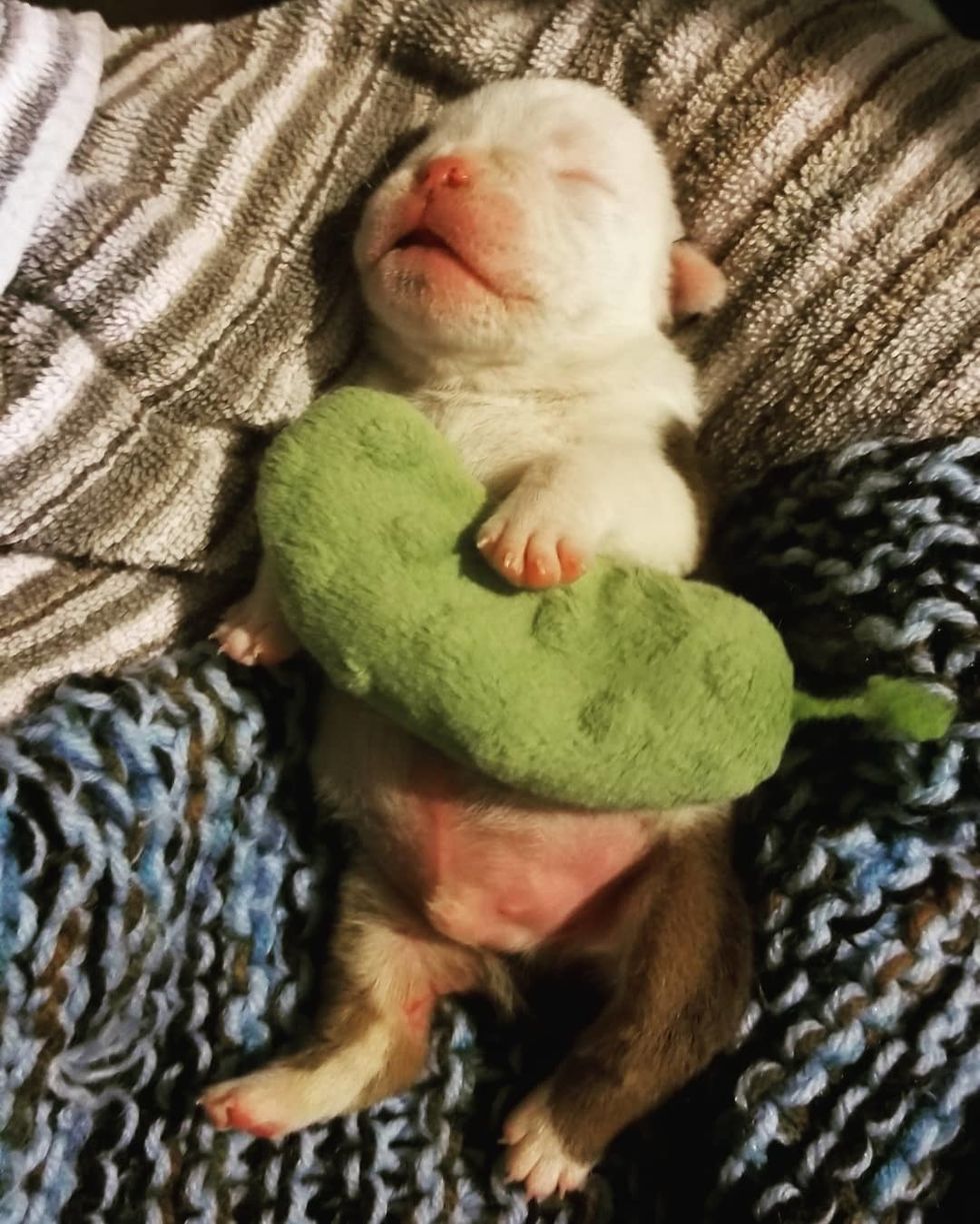 The pup named Kiwi Pig needed to be tube fed multiple times per day. After every meal, Benny came to wash his face and kept it clean.