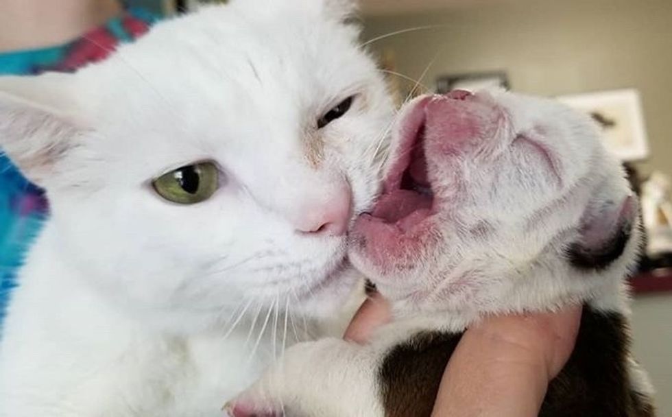 "He came from another rescue group who needed help tube feeding him," Ellen told Love Meow. "I will go out of my way to provide comfort, care, hugs and kisses to any orphan that needs it."