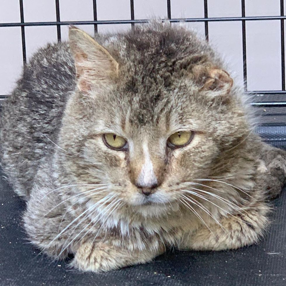 "His hair was all matted and his one ear is totally mangled. He has stomatitis and his teeth are broken off," Alley Cat Rescue shared with Love Meow. "He is an intact male cat, never neutered. He has really been through the wars."