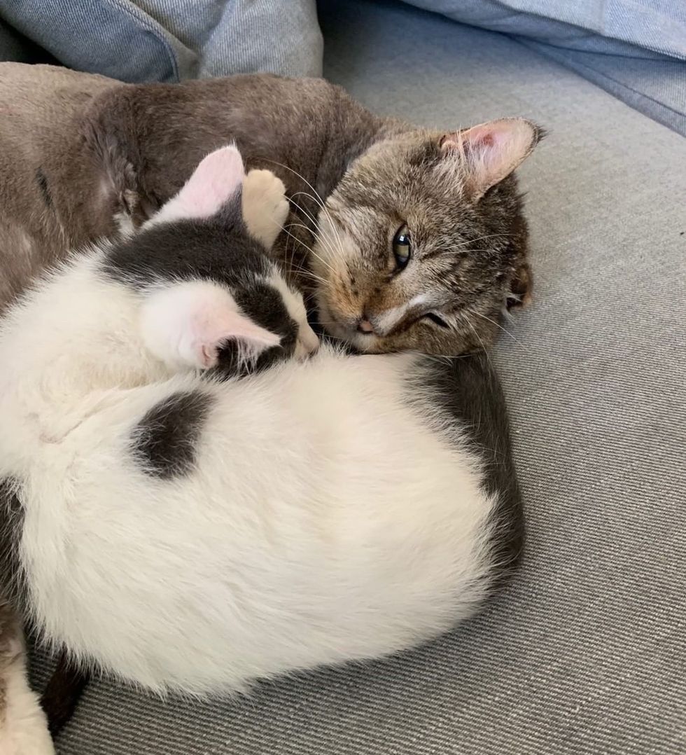 He's making up for lost time and filling that void with purrs and cuddles.