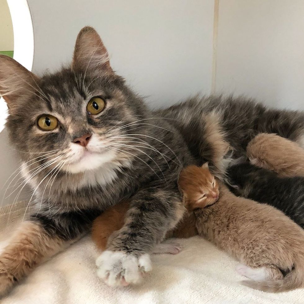 Mama Roc was so happy when she no longer had to endure pain caused by the matted fur and could finally nurse her kittens comfortably in her cozy nest.