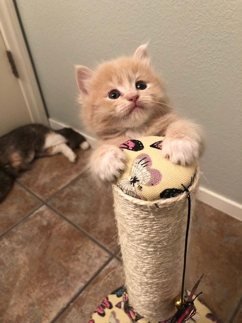 The mighty little kitty fears nothing and is quite the mischief-maker.
