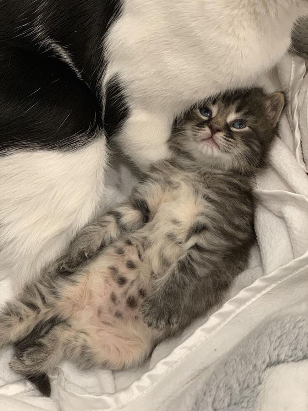 "This little girl was found all by herself under a rock in the Bronx. I wasn't really planning on taking in another kitten, but the shelter contacted me since she was only three weeks old and needed multiple feedings a day," Jess added.