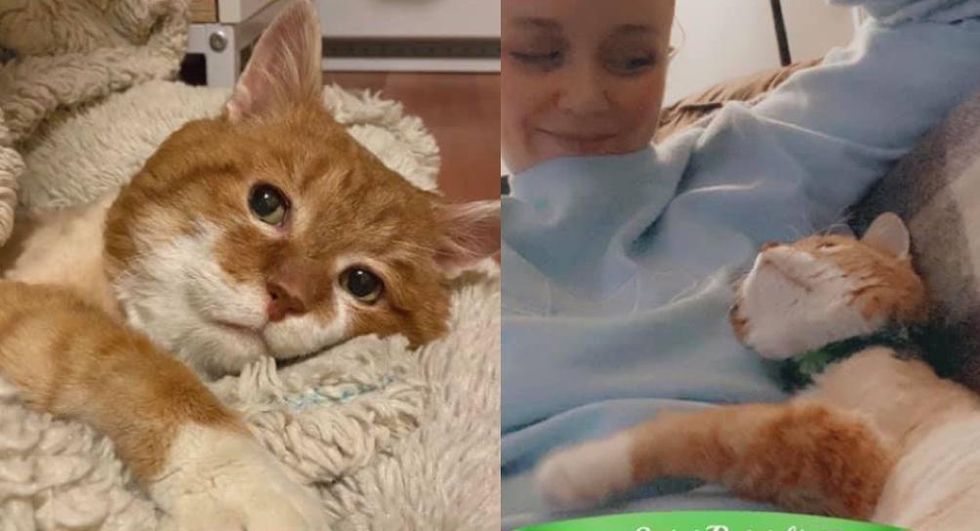 An orange cat named Bubby was wandering the streets until he came across a kind-hearted man eight years ago. The stray who was already missing an arm and part of his tail, sauntered into the man's kitchen and claimed it as his own. From that day on, the tabby kept showing up to the same residence and started hanging out with the man's feline companion, Seson.