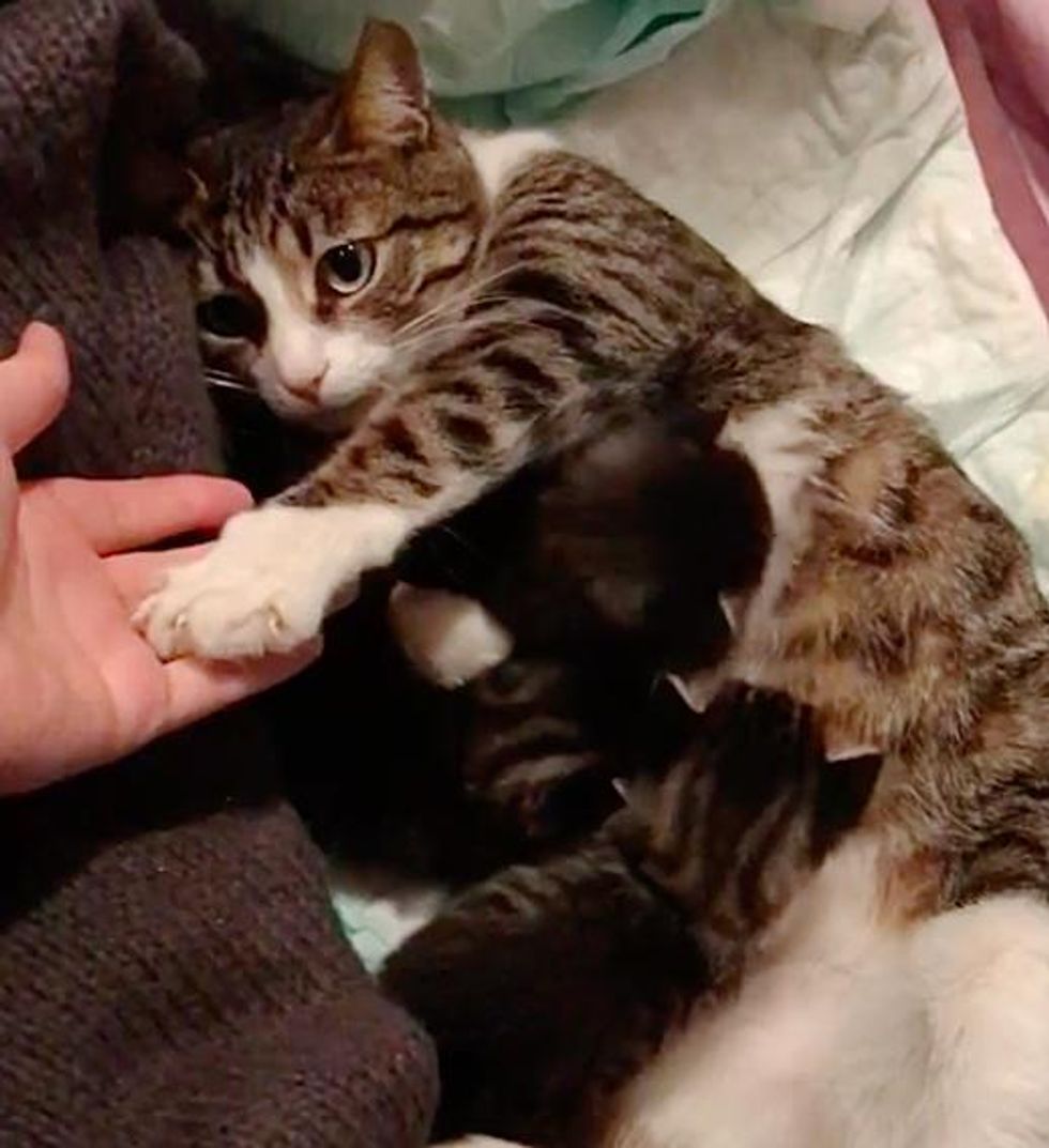 For the first few weeks, the sweet tabby unwaveringly stayed by her kittens' side and tended to their every need. Whenever Ahsen came to check on her, Zümrüt would gently put her paw on Ahsen's hand for some TLC.