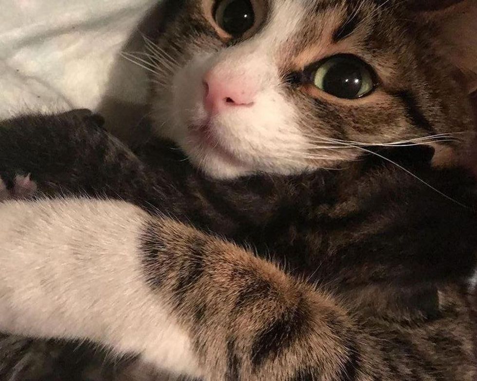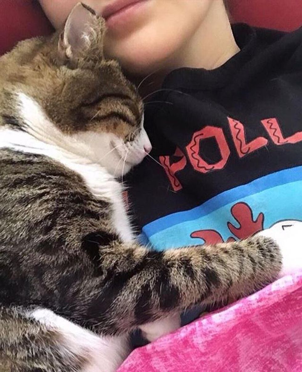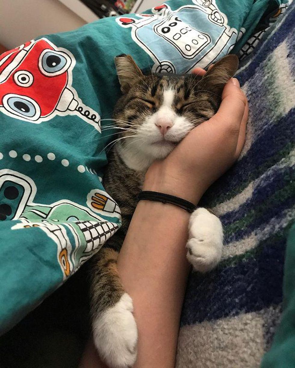 She may always be a bit feisty and sassy around other people, but the sweet tabby adores her human mom with her whole heart.
