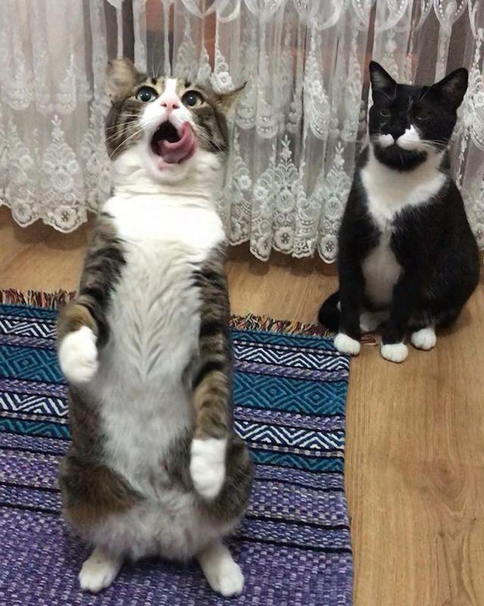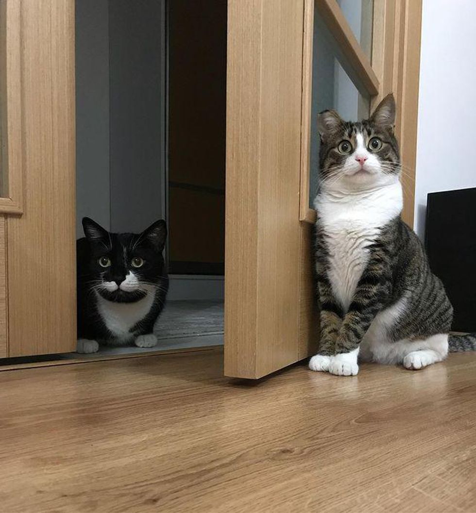 The tabby quickly became friends with the resident tuxedo cat Zikri, and they began creating all sorts of antics together around the house.