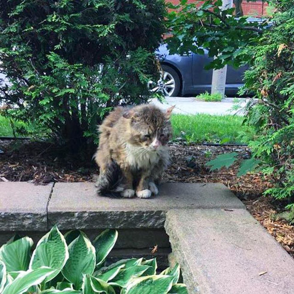 A ragged looking cat was spotted on the streets of Montreal. He looked as if he'd been fending for himself, living an outdoor life for quite some time.
