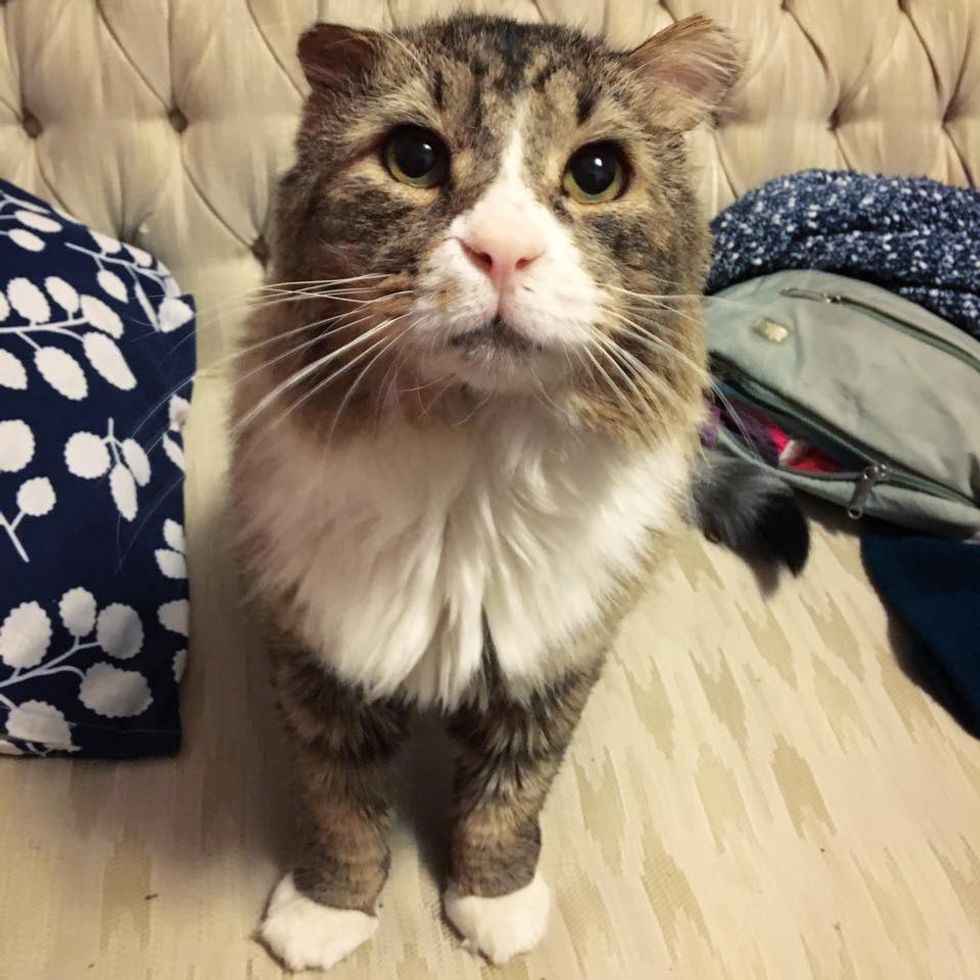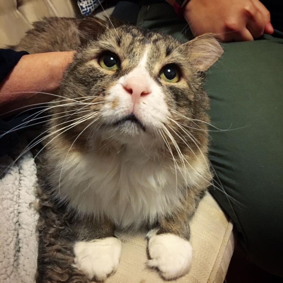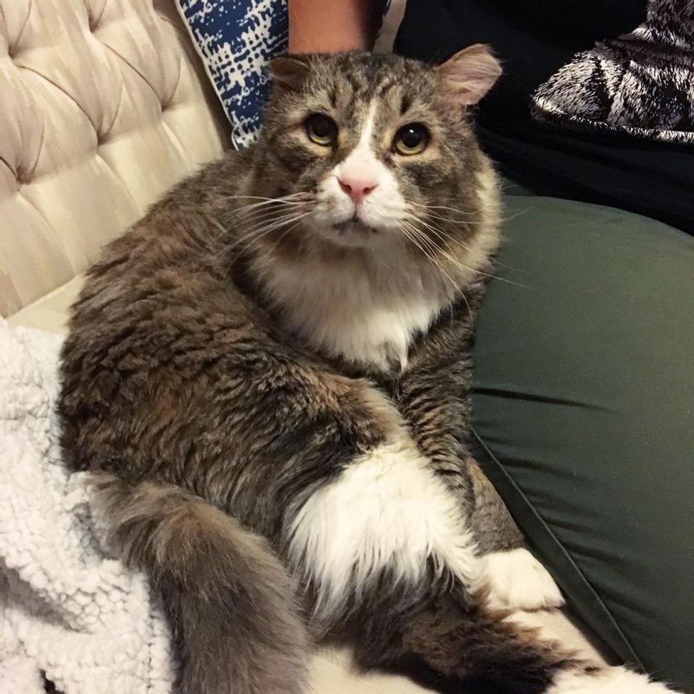 Marcel is a big kitty, weighing at 14 pounds. He's very strong but a kitten at heart.
