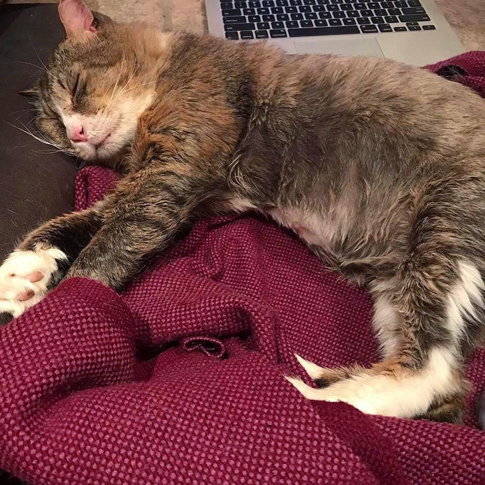 That day, the kitty went home with his rescuer and was able to get some much-needed shut-eye in a comfortable, warm bed.