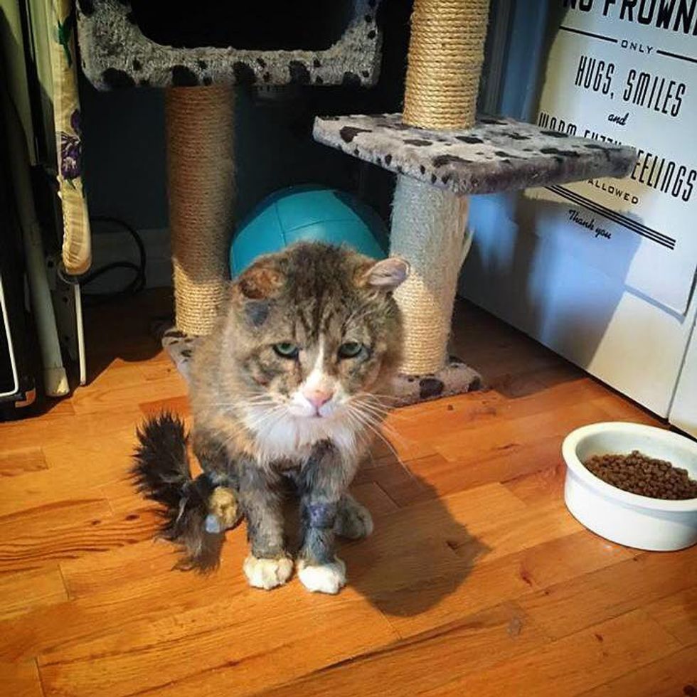 It's hard to believe that he's the same kitty that kind woman rescued from the streets.