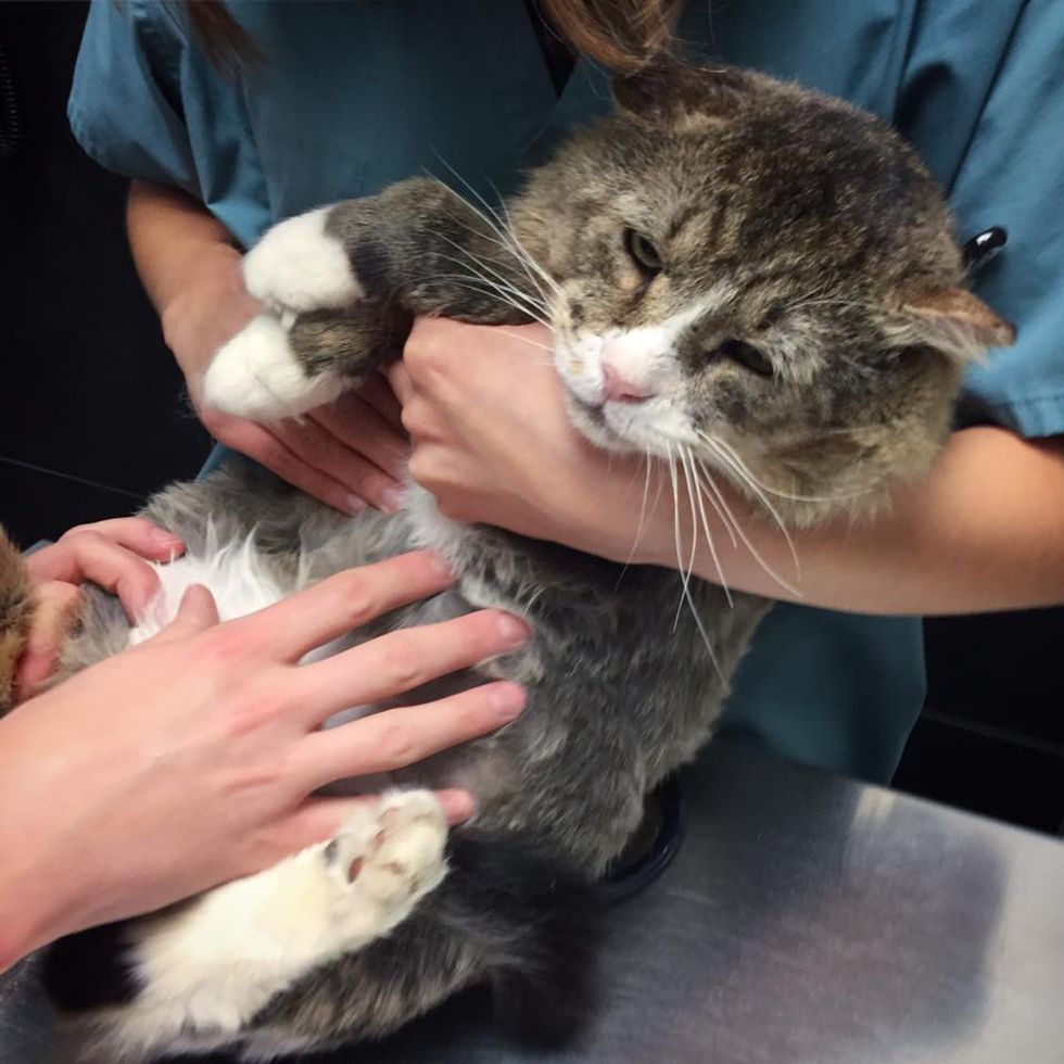 They named him Marcel. The 4-year-old cat was very nervous and shy at the clinic and kept his head down to avert eye contact.