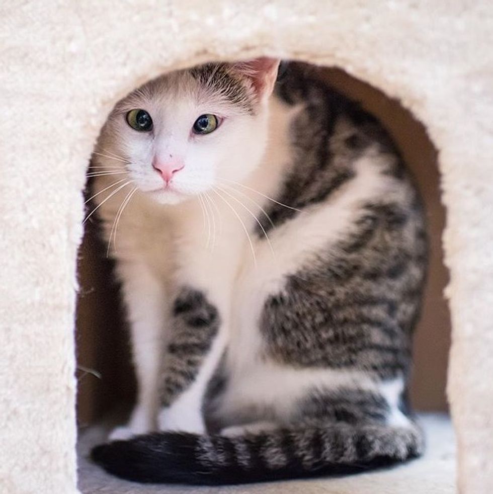 "The tiny cat was the outcast of a feral cat colony. The other cats took to pummeling our little girl, preventing her from eating," Tabby's Place, a cat sanctuary in Ringoes, New Jersey, said.