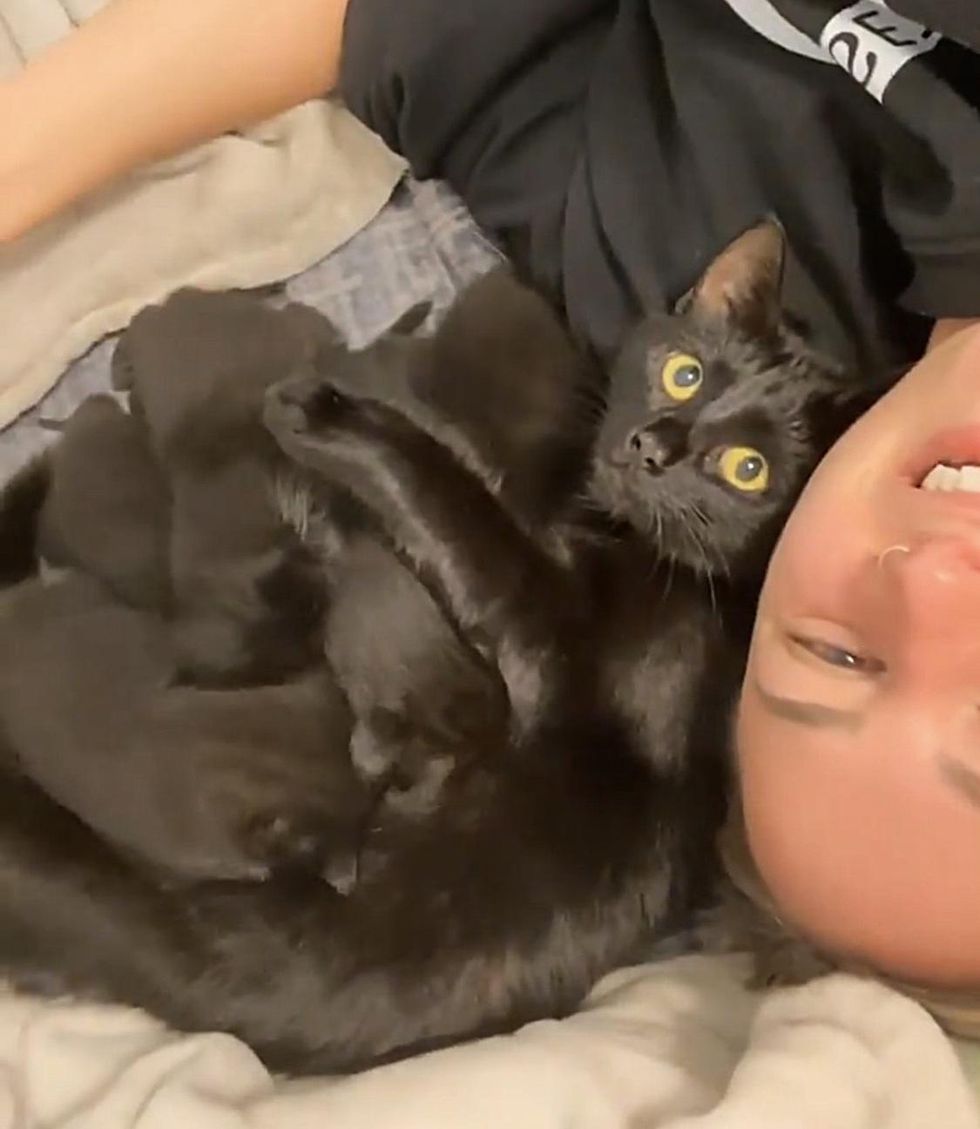 "She didn't even second guess it. She started grooming him and nuzzling him towards her own babies as though she knew he needed her. She has been so accepting of him—it made me cry," Cailey told Love Meow.