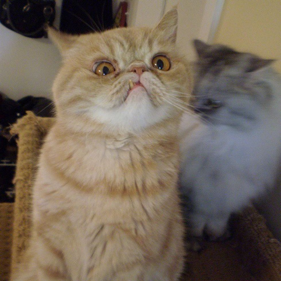 "His snaggletooth aka the 'personality tooth' recently had to get pulled from my cat Griffin Von Porkchop. I thought he might look a bit more normal afterwards... I was wrong," Griffin's human wrote via reddit (jonosvision).