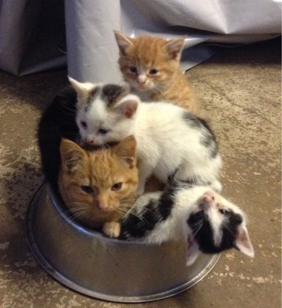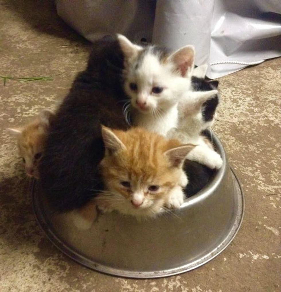 When they found a dog's food bowl, they decided they could all fit in there.