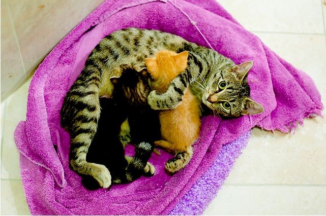 "We're so glad it worked out. She's a wonderful kitty & mama. Obviously he isn't hers, but she went to work right away on cleaning and nursing him. She is one we took from outside with her babies. She is one awesome cat and deserves an indoor home."