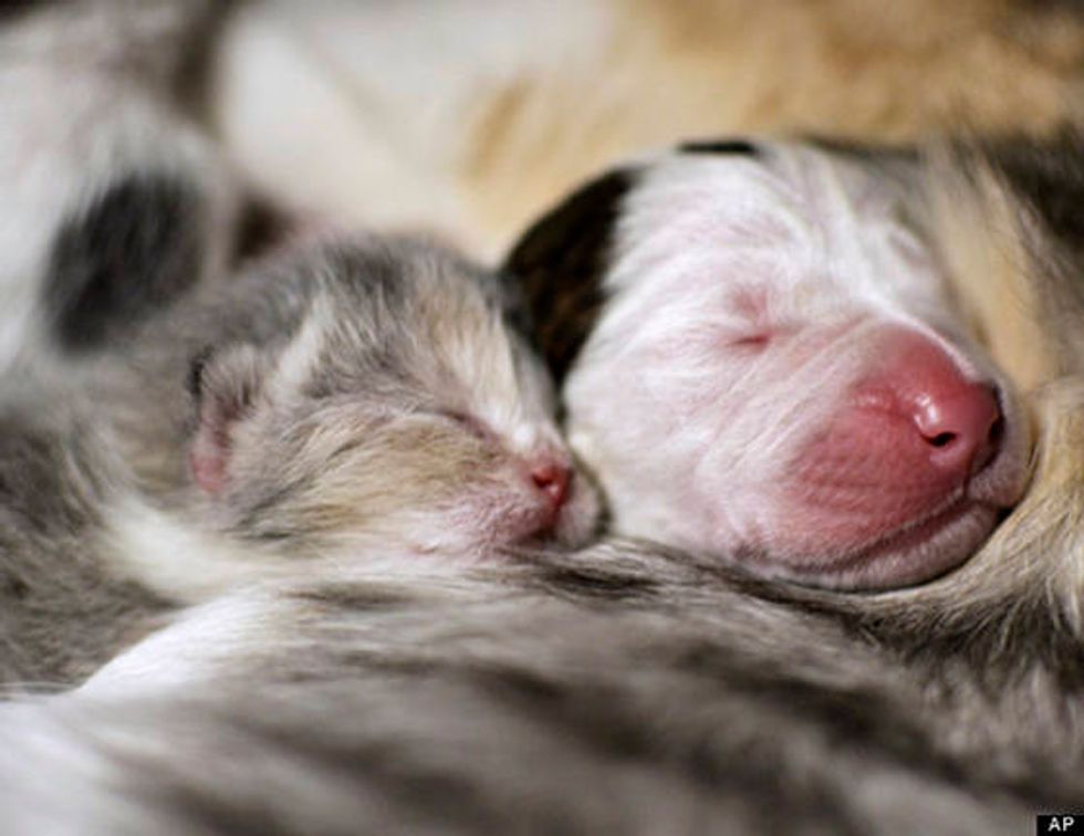 They decided to place the puppy in the care of a cat mother, Lurlene, hoping she and her litter would accept the little canine baby.