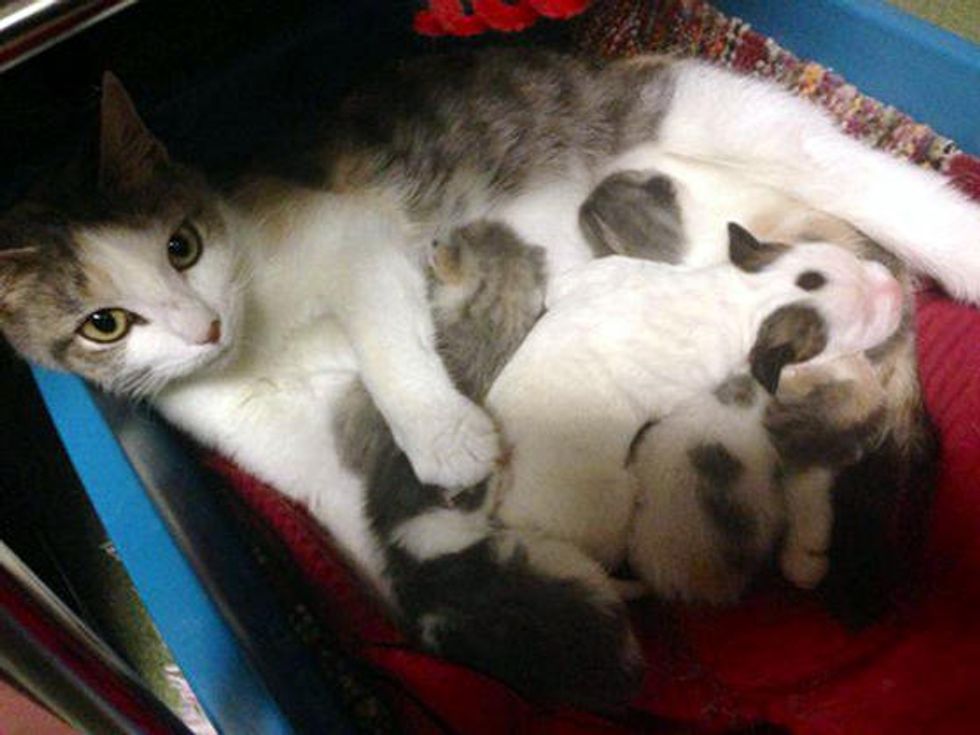 The staff at the shelter also provide additional help to alleviate cat mama's workload and make sure Noland gets adequate care.