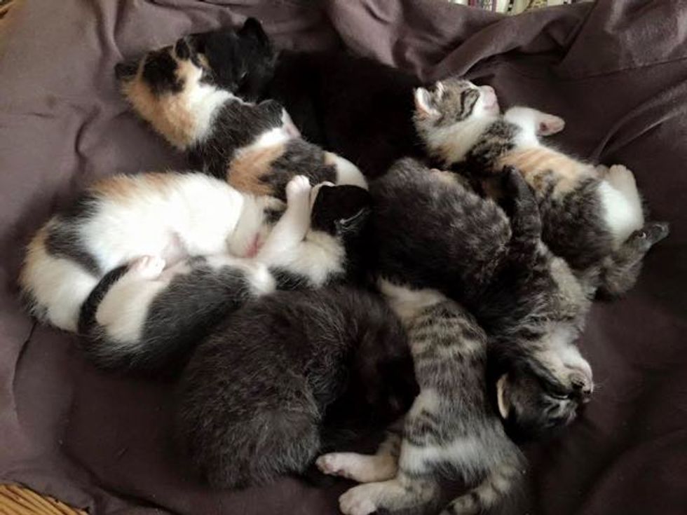 8 fur balls cuddling up for a nap at their foster home!