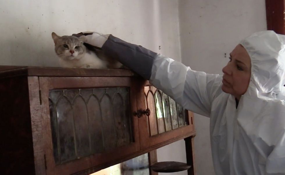 The condition of the house was so horrid that they had to put on a hazard suit before entering the door. They couldn't believe how these cats had managed to survive in such an environment for so long, but they had one goal in mind—to save them all!