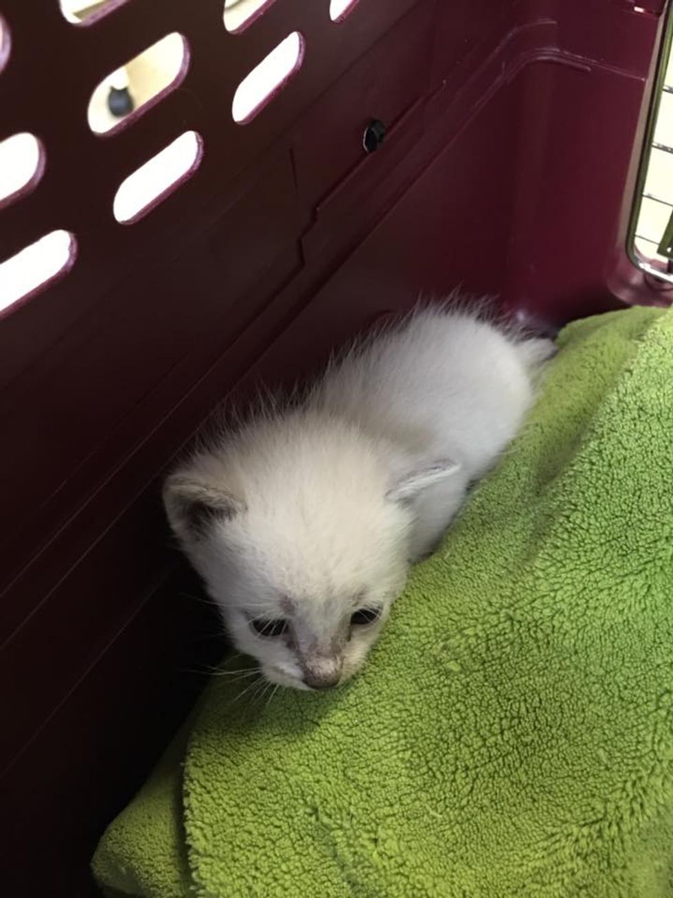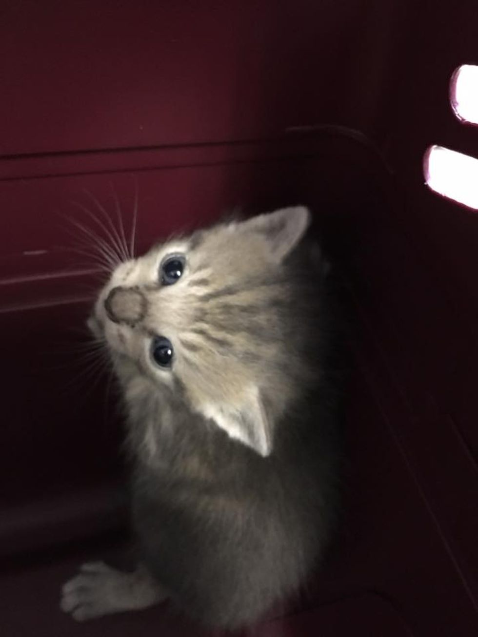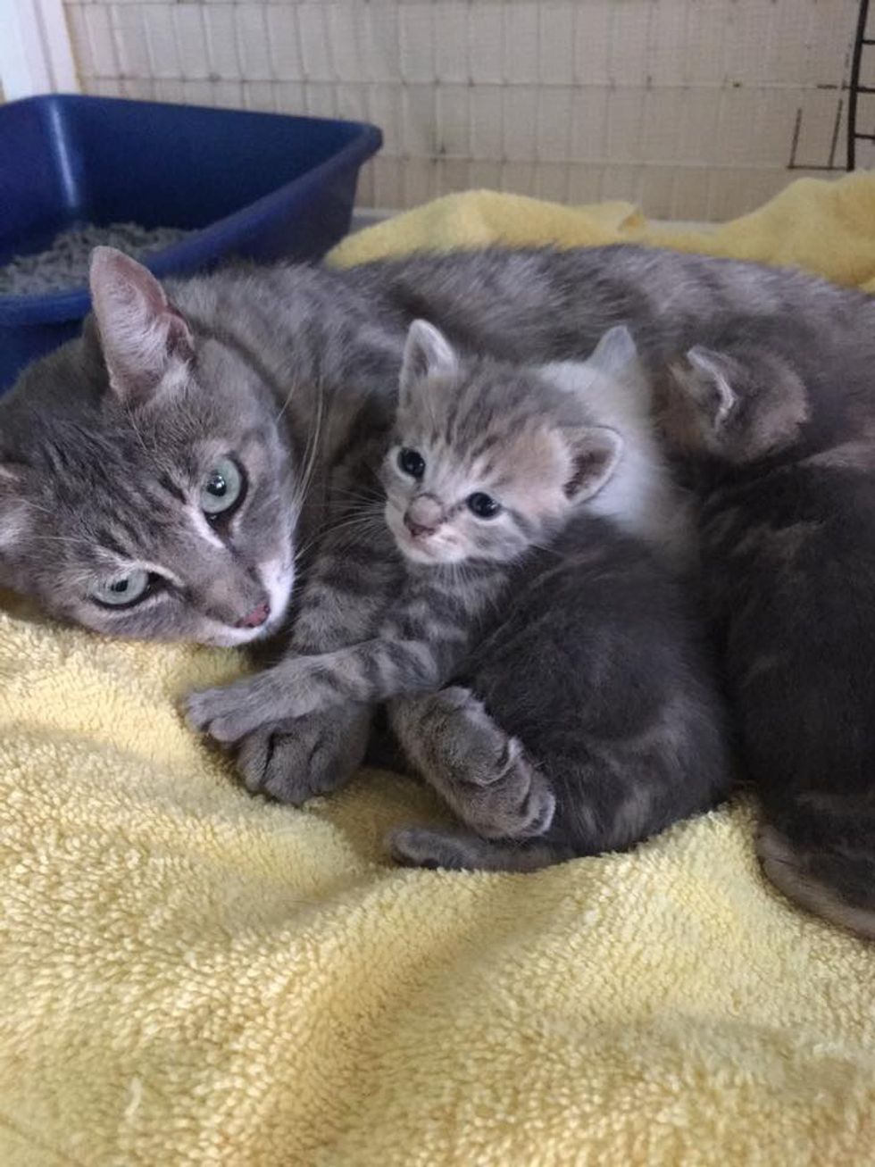 As the volunteer was petting her, she took the opportunity to grab the mama and bring her in a carrier. Mama was a bit spooked but quickly settled down after a few minutes.