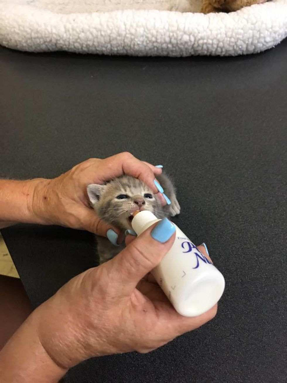 The kittens were covered in fleas. After giving them Dawn baths, picking off dozens of fleas and filling their bellies with KMR kitten formula, the tiny fur babies were huddled together sleeping comfortably in their warm nesting place.