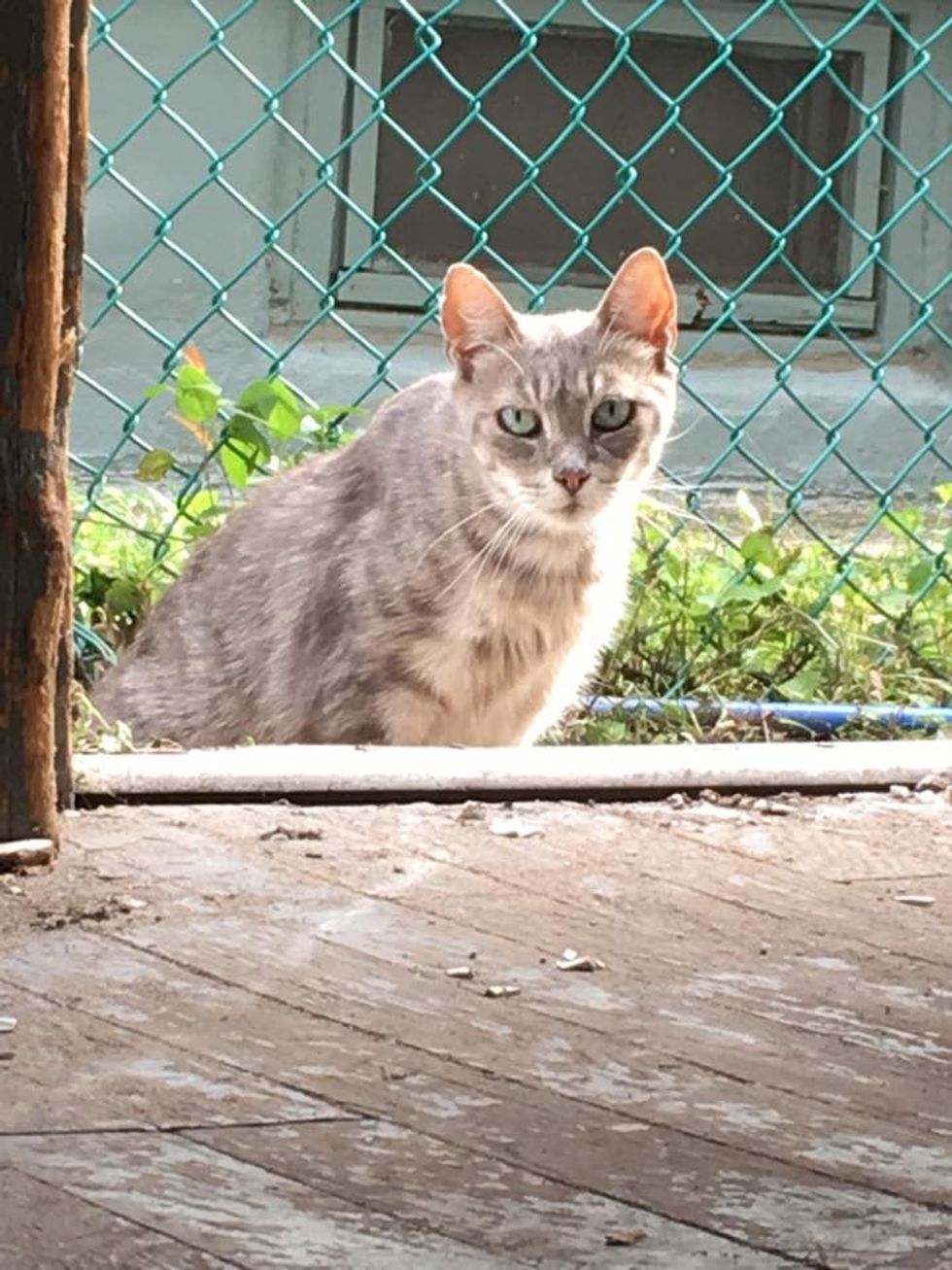 "She was apprehensive to come in but she allowed one of the volunteers to get close. We brought food outside and she approached the plate."