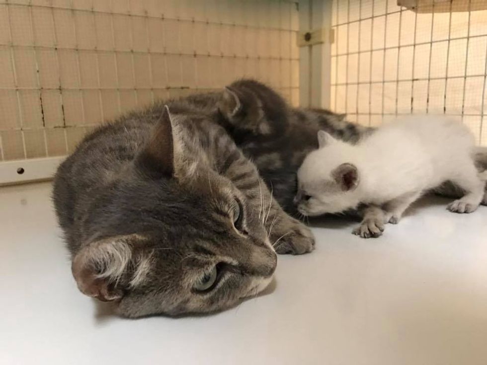 "As mom heard their tiny meows, she started to meow back. Within a few minutes the babies were snuggled with mom and nursing."