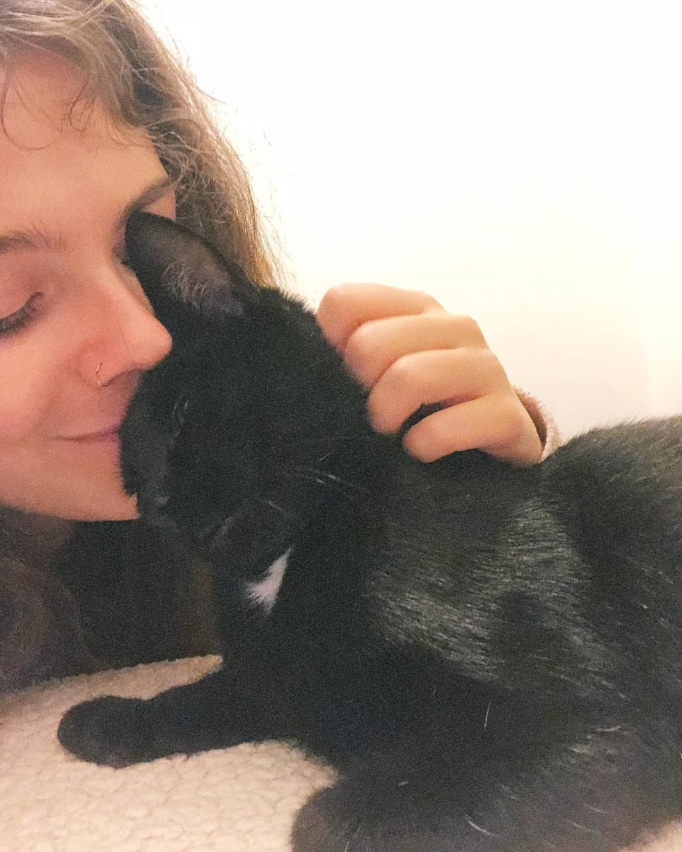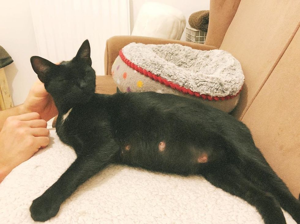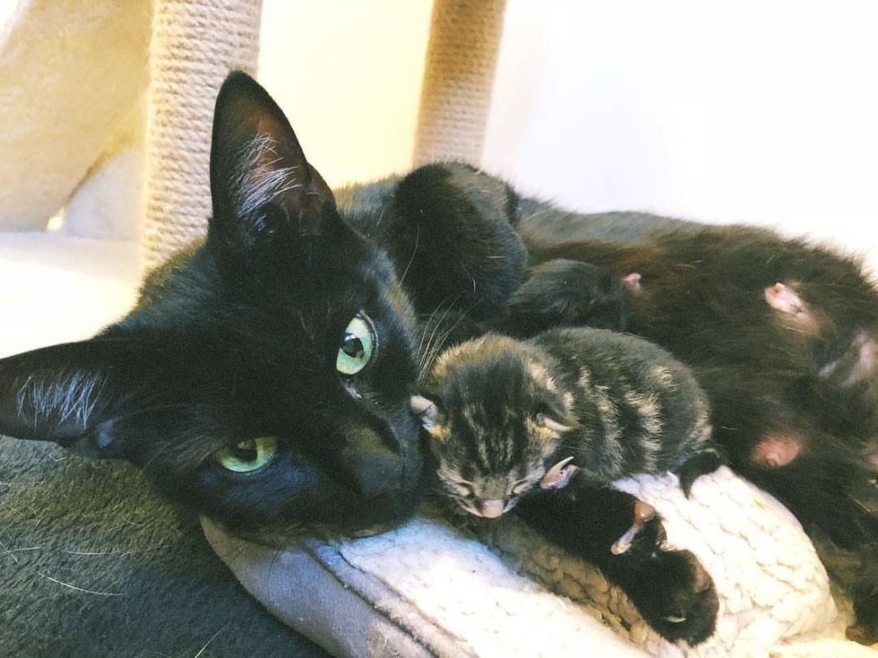 A beautiful black cat was turned to a rescue group, Wellcat, in Birmingham, England, when the "owners" were no longer interested in her. She was heavily pregnant and desperately needed a foster home. According to the rescue, this would be her third litter.