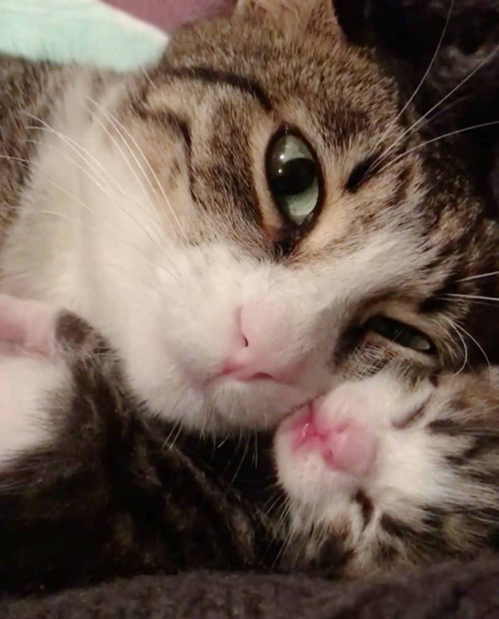 The sweet tabby would purr up a storm and start kneading with her paws whenever Ahsen came in with food or gave her pets and belly rubs. "The cat mother was very grateful," Ahsen added.