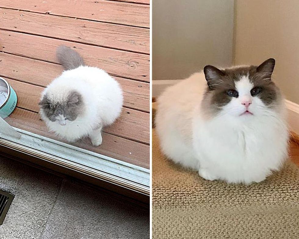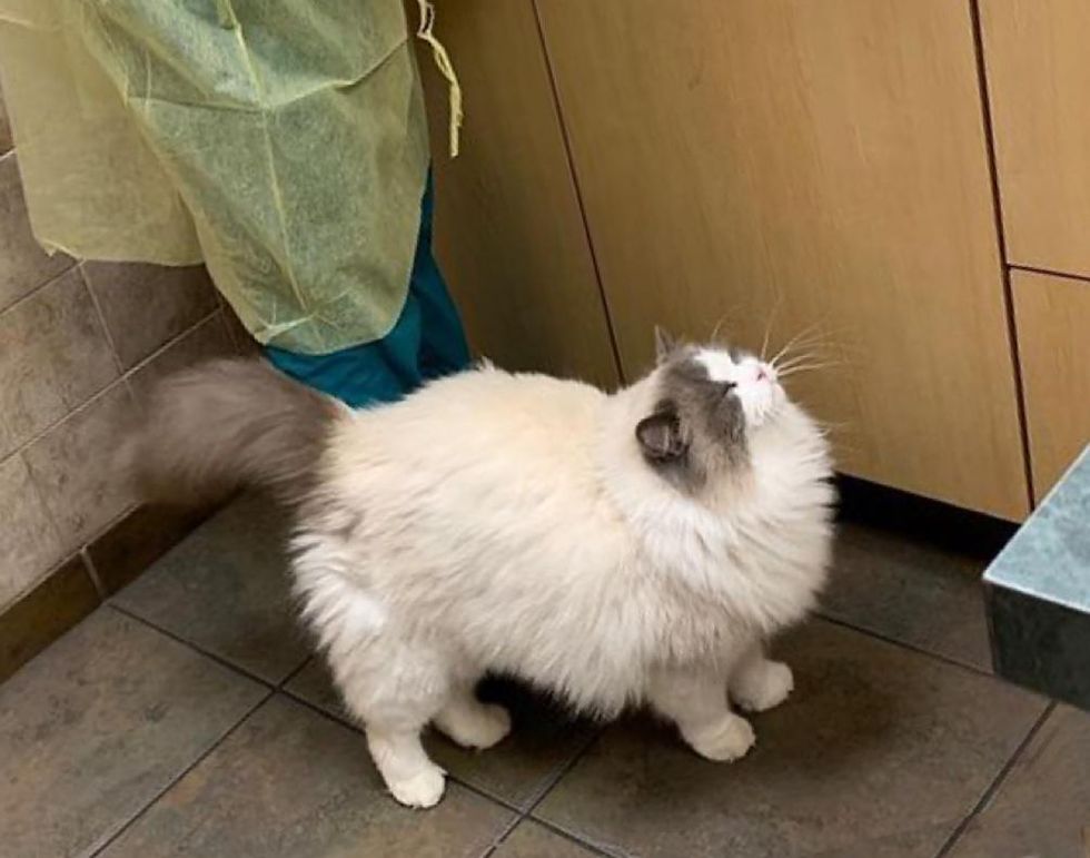 After a trip to the vet, the 12-pound glorious cat was estimated to be around 2-3 years old. He was treated for an upper respiratory infection and had several clumps of matted fur removed to give him some much-needed relief.
