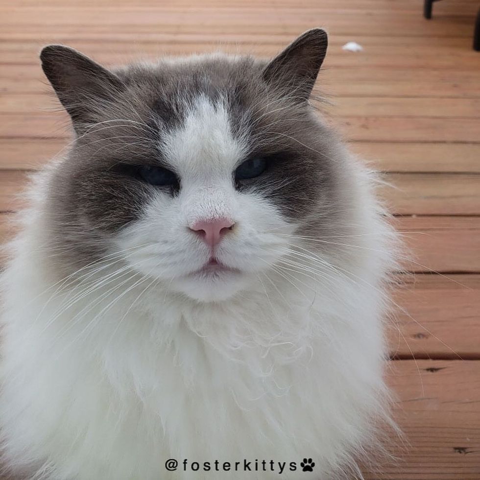 A family that lived on her street sold their home and moved away, leaving their Ragdoll behind. The cat began roaming the streets, going house to house for shelter and food. Eventually, he found his way to the kind woman who couldn't bear seeing him out alone.