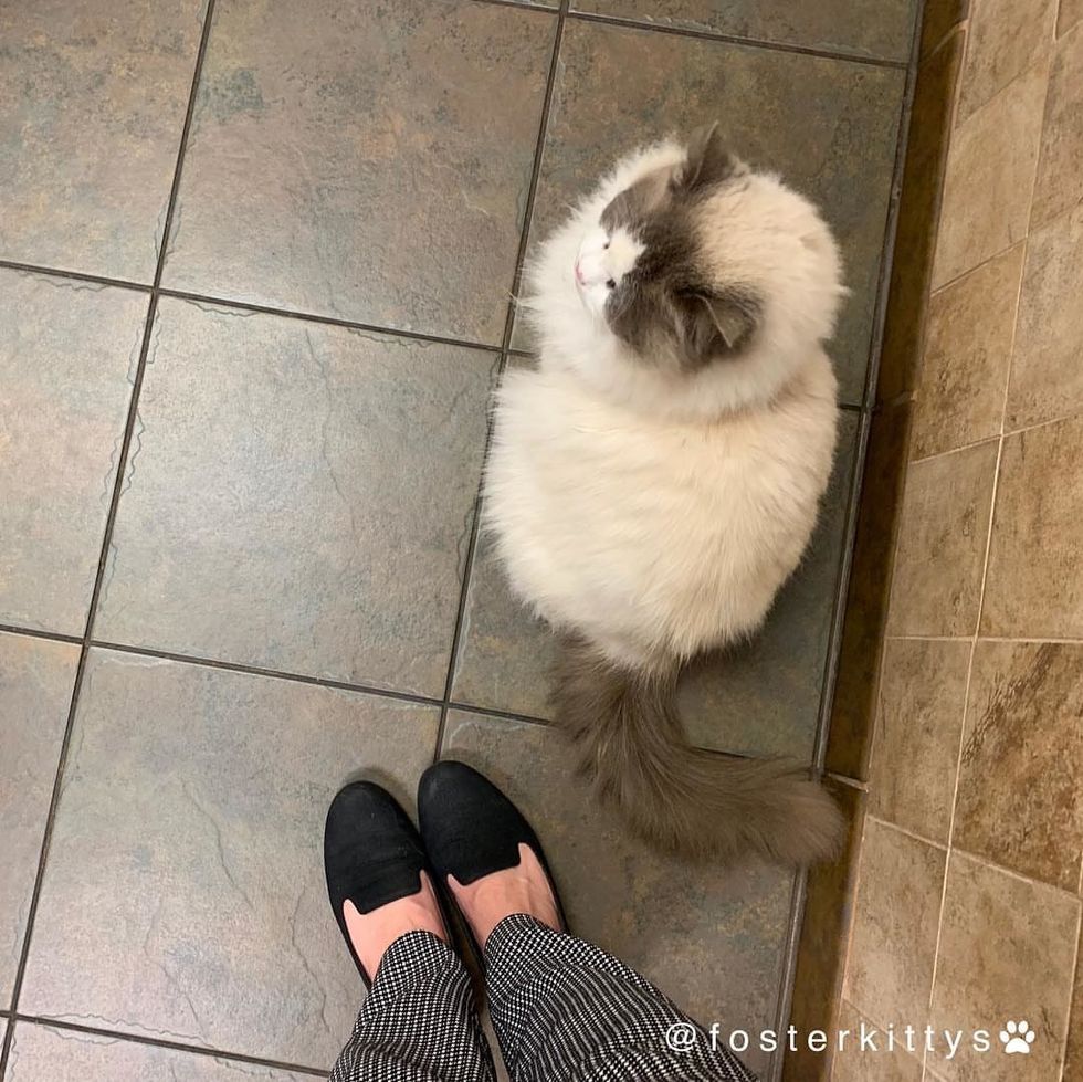 "He greeted and rubbed on everyone and just purred away. The staff gushed over him!"