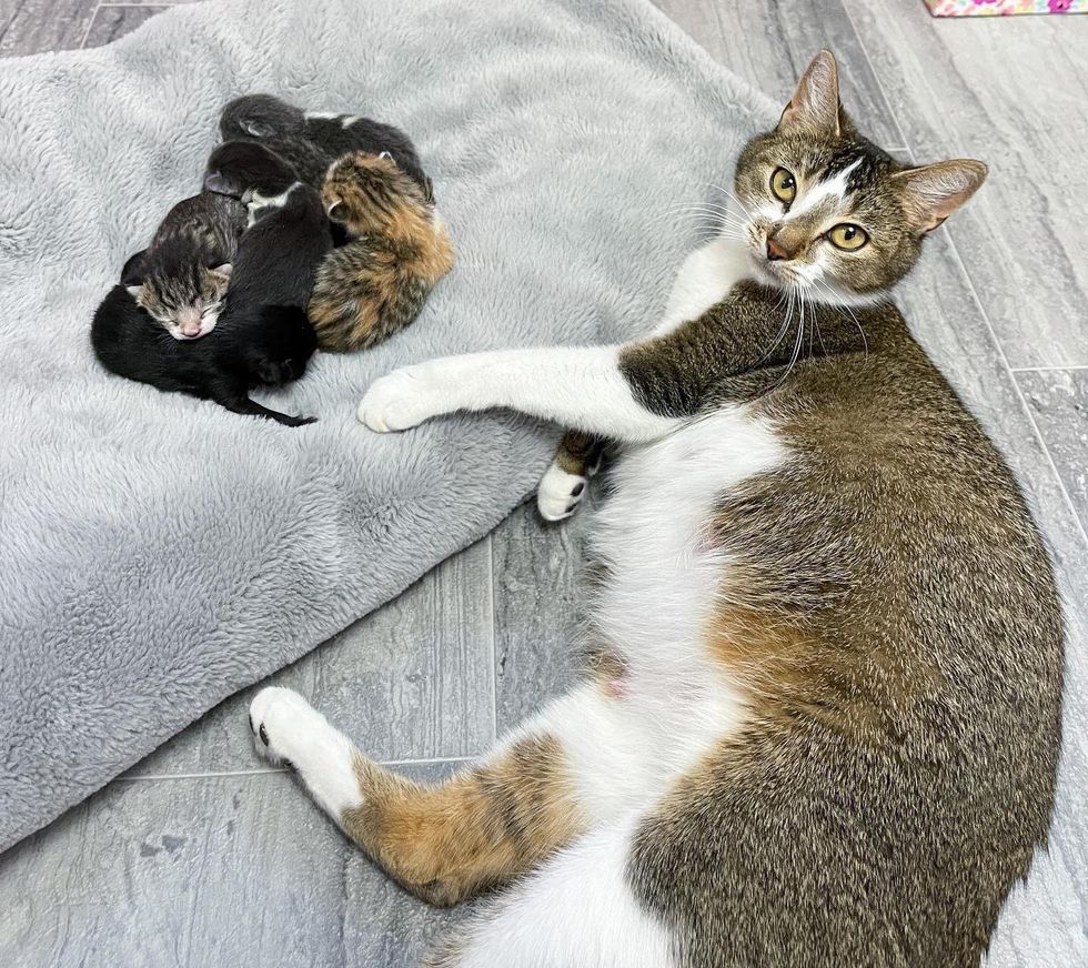 "I'm so thankful that she didn't have to give birth outside in the streets, in the snow or rain. She will eventually be spayed and never have to worry about being pregnant or giving birth ever again!"