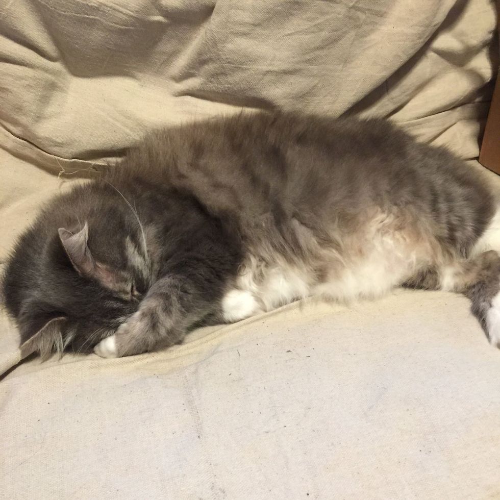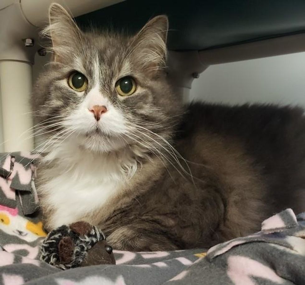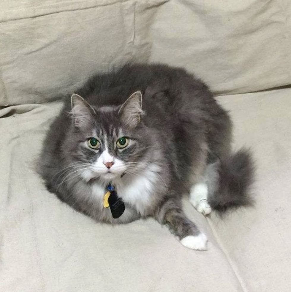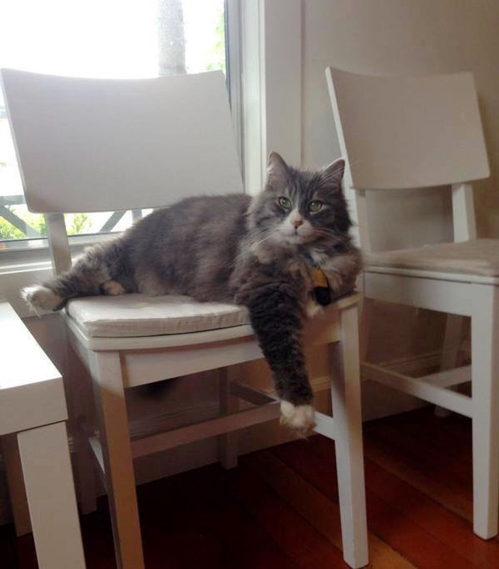 After becoming unemployed, he was eager to get back on someone's lap again and resume his daily snuggle sessions with his human friends. "This long-haired, gray gentleman is happy as the proverbial clam when he is lying on laps, couches, chairs or anywhere people are near," the shelter added.
