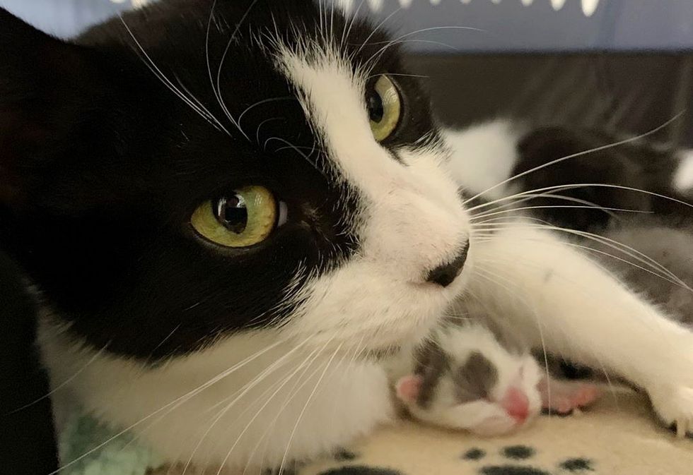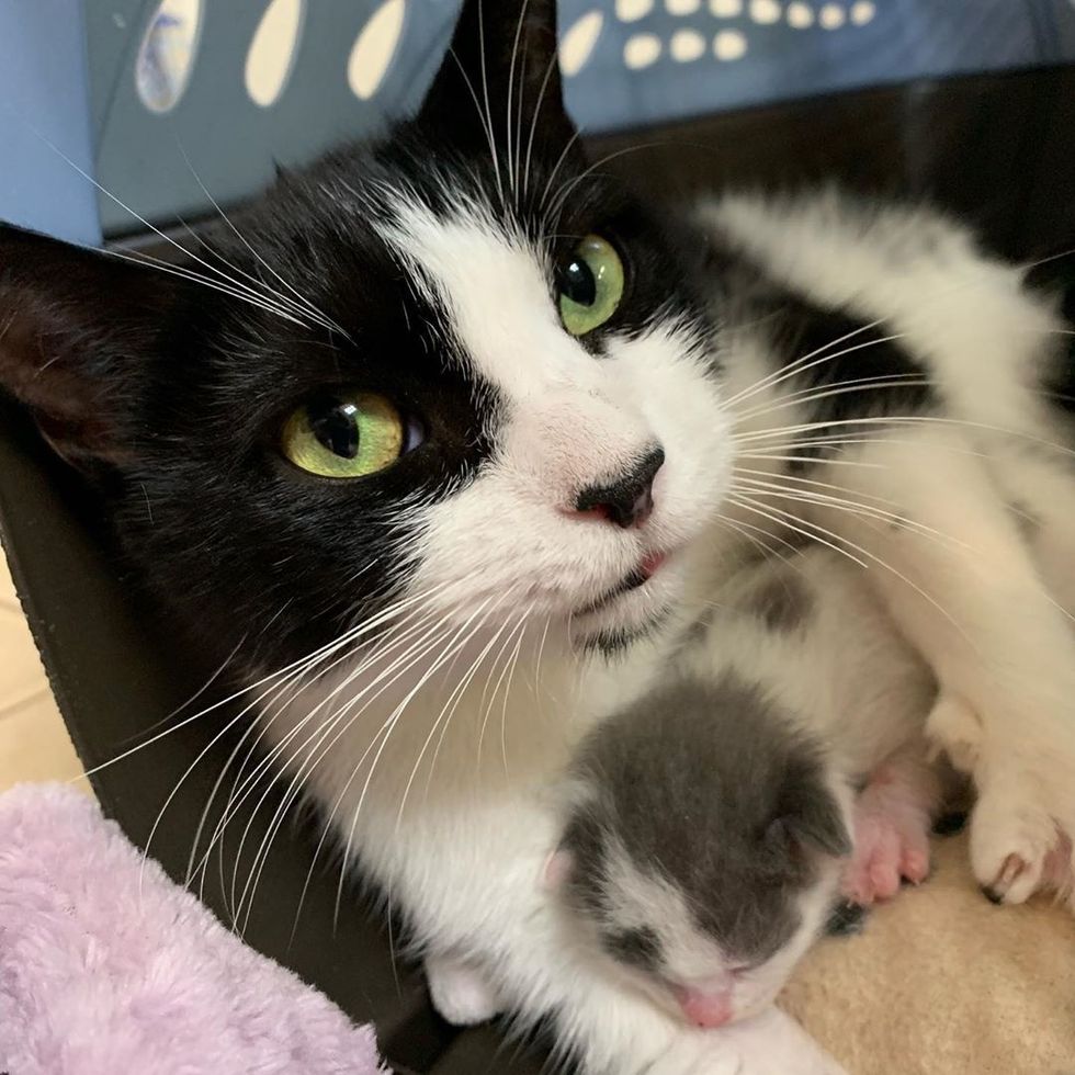 Winnie the cat was brought to a county shelter in Orlando, Florida and gave birth to a singleton (named Kevin) while she was there. Pet Alliance Greater Orlando took in the mother and son duo as they were in need of a foster home.