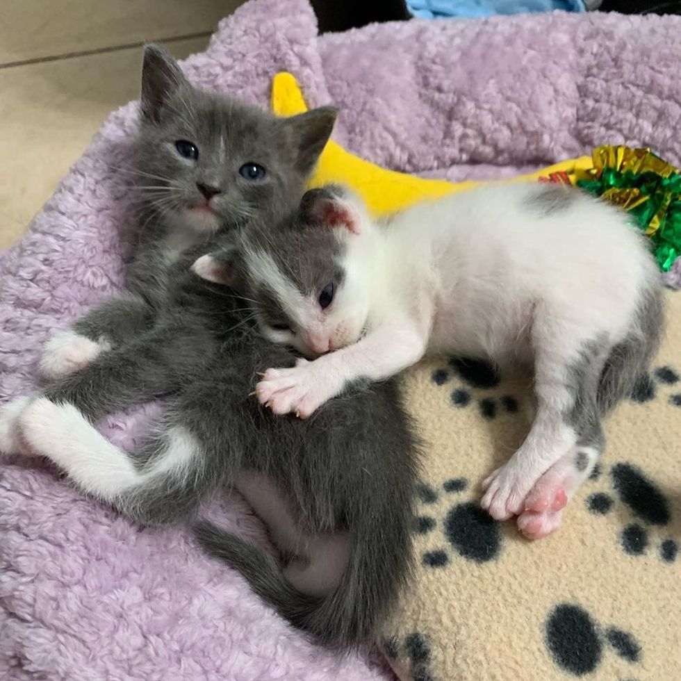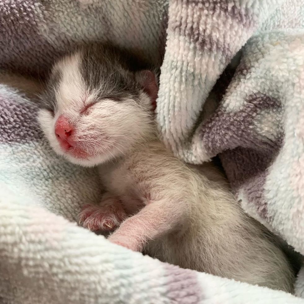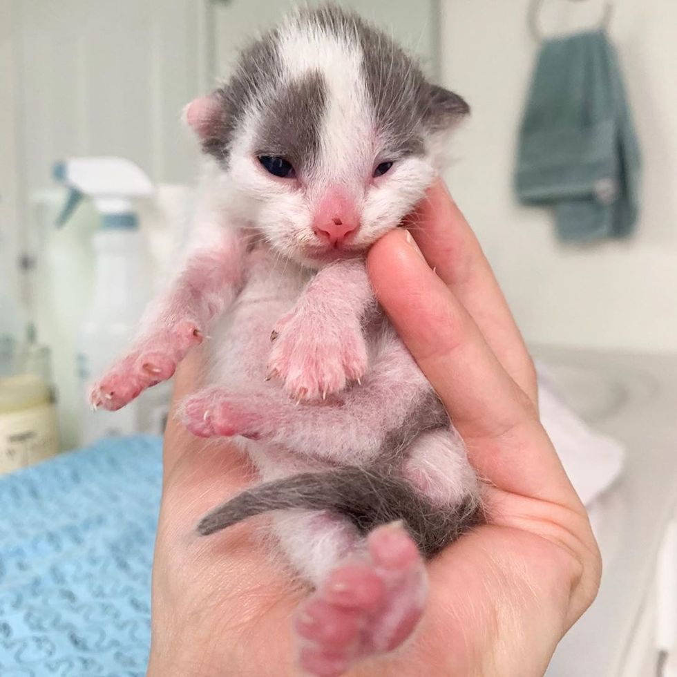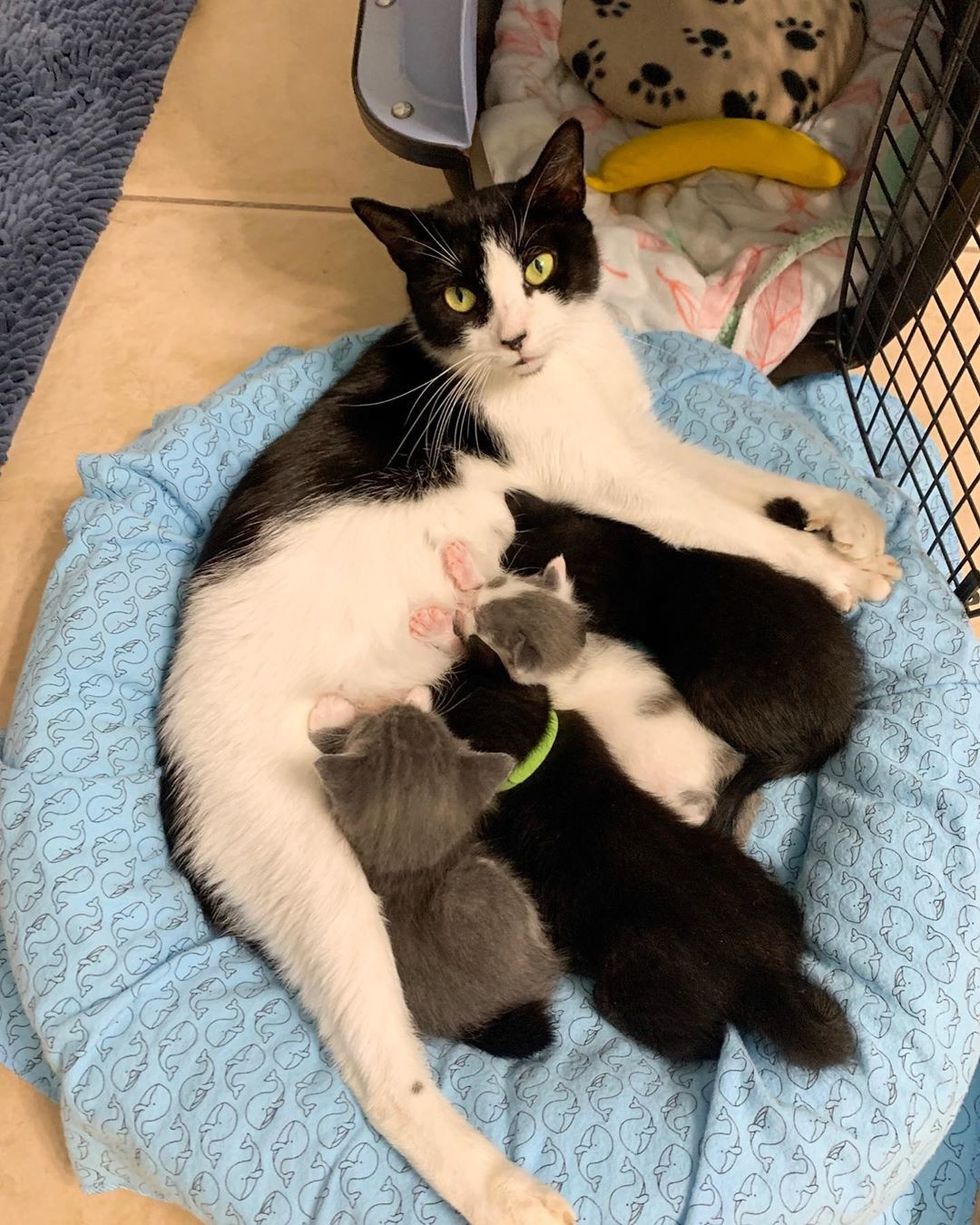 Meanwhile, the rescue group had two orphans named Paul and Wayne who had been found outside. They tried to introduce them to Winnie to see if she would accept them. The cat mom immediately took them in and started nursing and cleaning the babies.