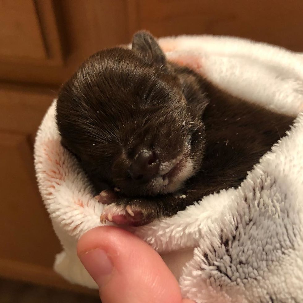 "This is my first neonatal puppy so Dr. Carin Ferdowsian and Dr. Rachel Wallach have been teaching me a lot about how to properly care for this little guy."