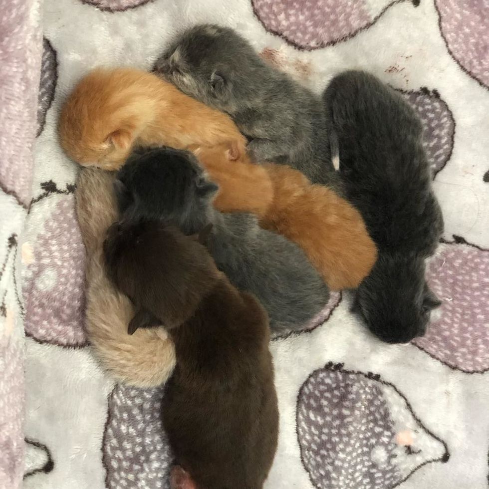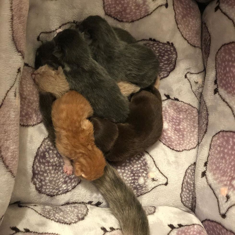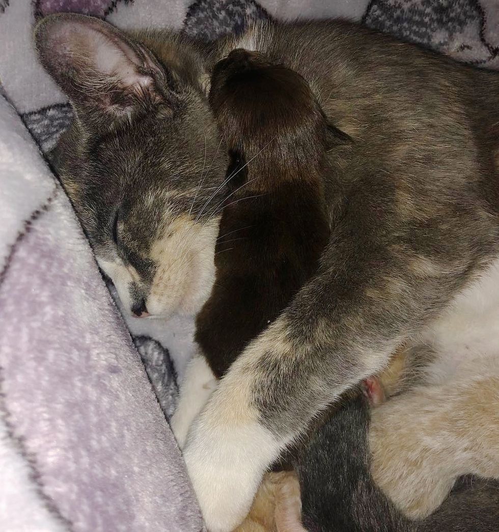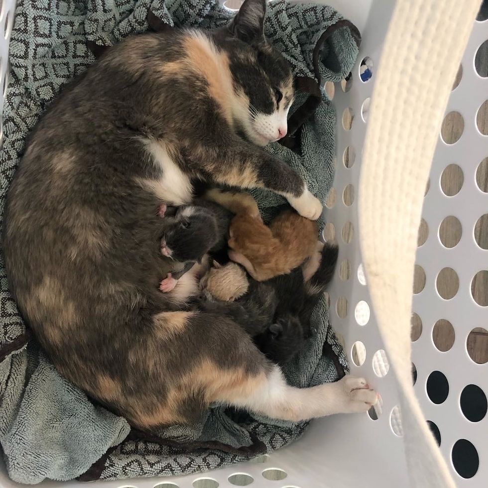 Two days later, the rescue took in six little newborn kittens along with their calico cat mom.