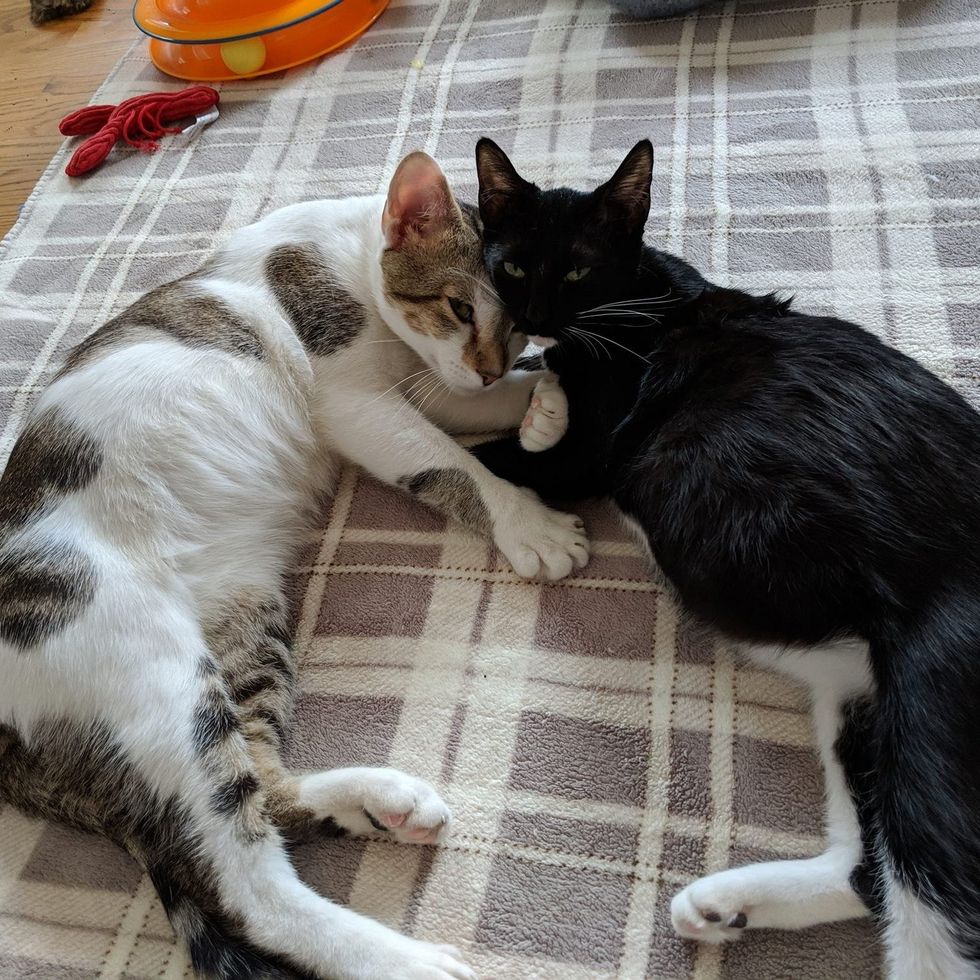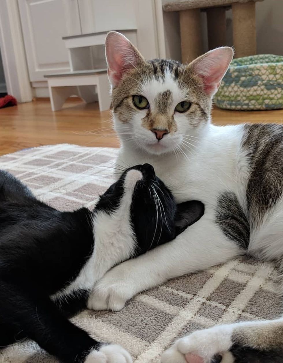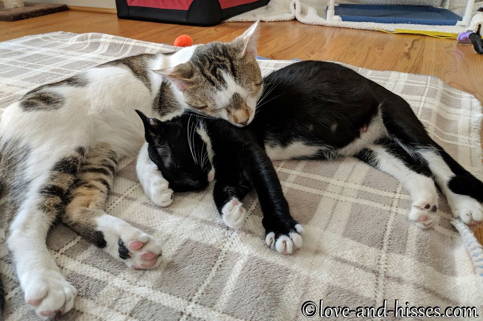 As they patiently waited, the two kitties continued to shower each other with love. The day before Valentine's Day, Robyn woke up to meowing coming from the foster room.