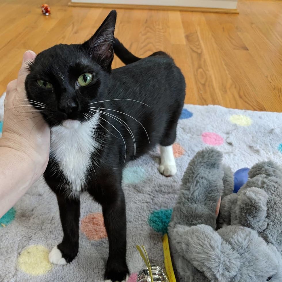 When shelter volunteers discovered that the tuxedo was pregnant, they knew they needed to get them into a foster home.
